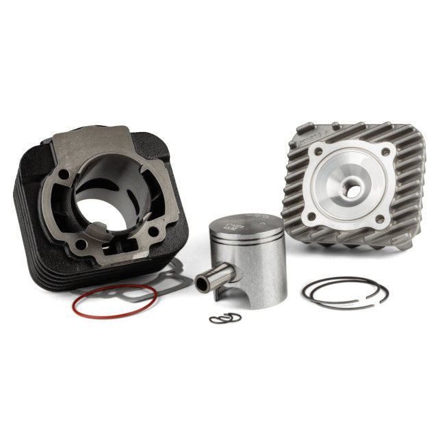This 70cc kit for Piaggio AC engines is not approved for road use and requires a specific break-in period. In addition, it features a discreet design with the exterior molded like the original cylinder of "49cc"