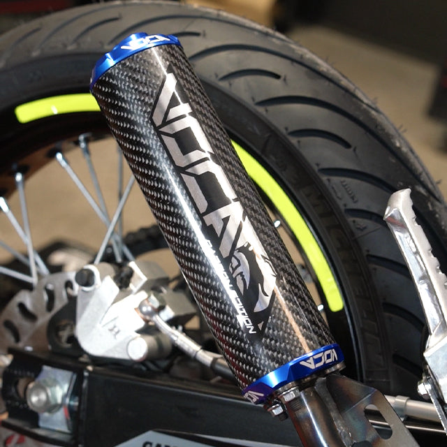 The exhaust includes the VOCA silencer Carbon, made with 100% genuine carbon, and the CNC aluminum end caps, available in multiple colors.