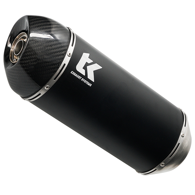 Cross exhaust for 125, with collector and silencer made of stainless steel. End tip in carbon, inner fiber of basalt.