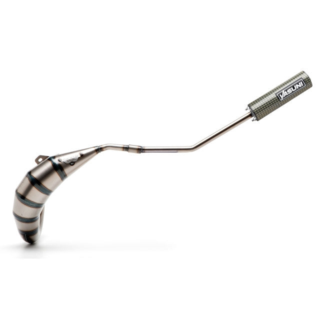 Cross-type exhaust specially developed for original 50cc cylinders or 70cc sport-type cylinders. Its design provides excellent acceleration, maximum power at low and mid RPM, which offers a greater range of performance for your engine, whether original or with a sport-type preparation, Alu Sport 70cc, Metrakit Iron 74cc, etc.