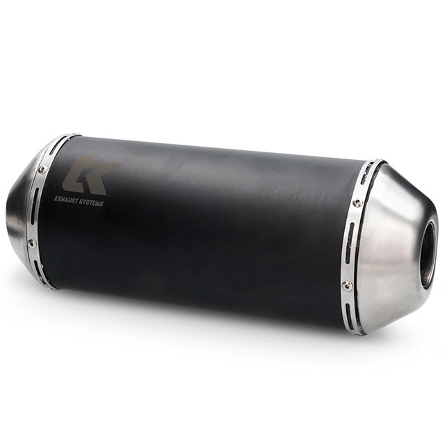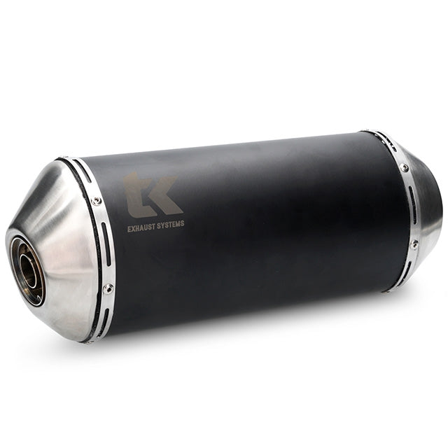 The silencer is made of stainless steel in black anodized color. Collector welded in stainless steel.