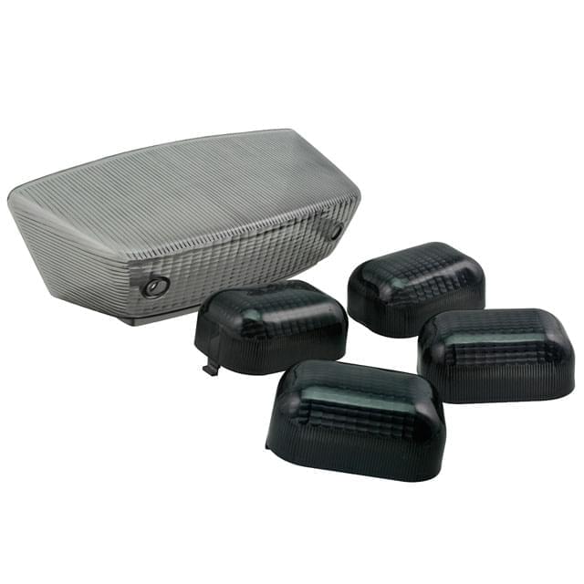 The kit consists of 4 lenses for the indicators and the rear light in black tone. We recommend using colored bulbs in the indicators, and a red bulb in the rear light.