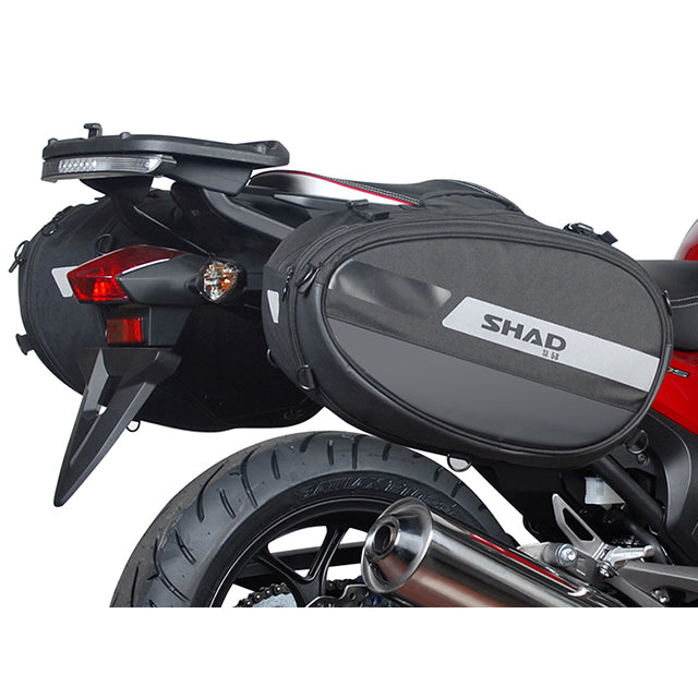 Large capacity Expandable Saddlebags, with reflective elements for greater safety. Attachment to the motorcycle with velcro straps or with the new “Side Bag holder” fastening, a system developed to secure the side bags more safely. Features: • Main compartment with zipper. • Exterior pocket with zipper. • Zippers with pullers for use with gloves. • Expandable: increases the set's capacity up to 58L. • 2 straps with buckles to adjust the volume and prevent deformation due to wind or motorcycle vibrations. • Reinforced structure. Greater stability against the wind. • Padded carrying handle. • Universal fit. 2 systems for attaching to the motorcycle: o INCLUDED: velcro straps or OPTIONAL: metal “Side Bag Holder” fastening, to which it is attached with 3 velcro straps per side. • 3 straps to secure the bag to the motorcycle frame and to connect the bags together, providing more stability. • Waterproof rain cover. • Reflective elements for greater safety. • ACCESSORY: Thermal Protector (Ref. X1SB97). Specifications: Dimension: 18/21 (expanded) x 47 x 29 cm Capacity: 46L to 58L (expanded) Material: Polyester
