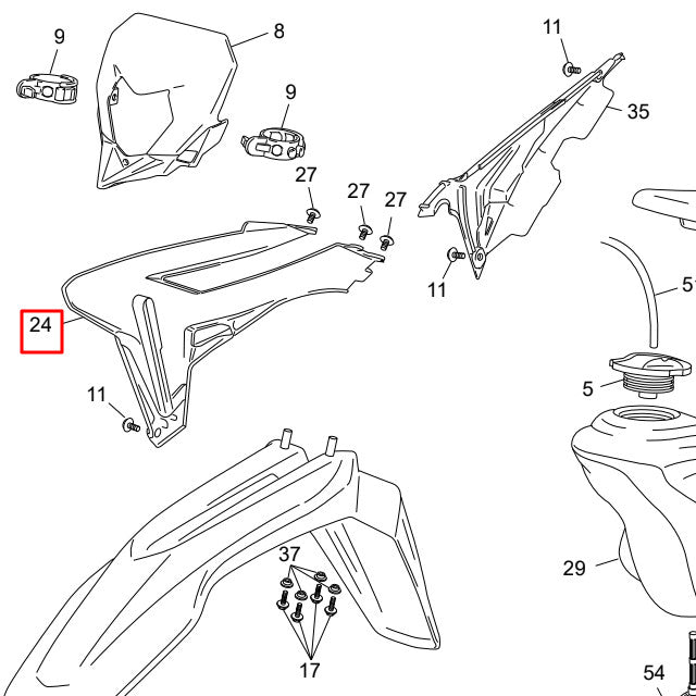 Original right front side cover for Sherco 50cc from 2012 onwards in blue color.
