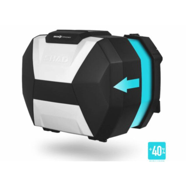 They can expand +70mm, increasing their volume by 40%, allowing the storage of a modular helmet inside. The bag can achieve the highest level of integration on the motorcycle when 3P system fixings are used.