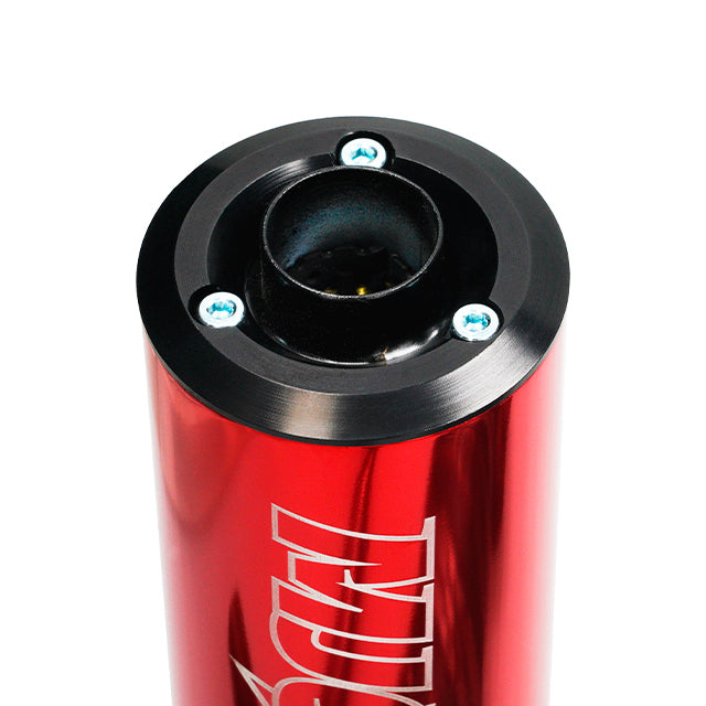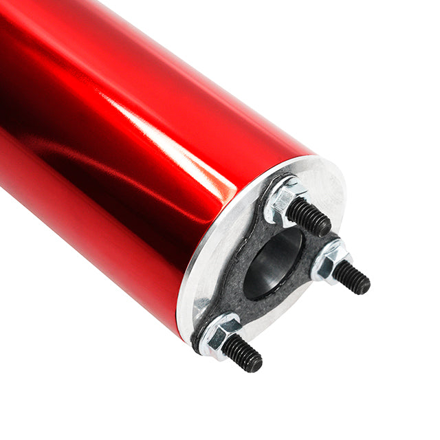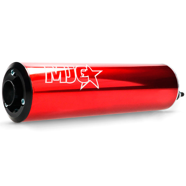- Silencieux en aluminium anodisé amovible : Longueur de 212 mm, coloris rouge avec logo MJC gravé en blanc.