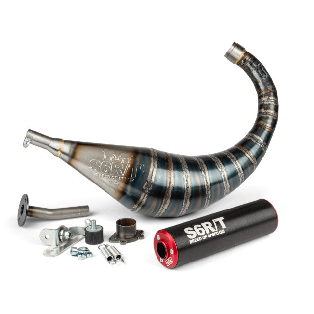 Il s’agit d’un tube d’échappement Hyper Racing haut de gamme pour Derbi Senda, Aprilia SX, Gilera SMT et de nombreuses autres motos de 50cc équipées de moteurs Derbi. Toujours à la recherche des meilleures performances, Stage6 R/T propose ici un échappement spécialement conçu pour les cylindres de 70cc à 80cc.