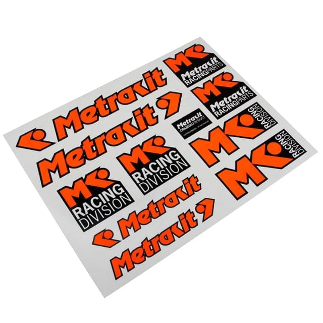 Set d'autocollants avec tous les motifs et logos Metrakit et Metrakit ProRace. Désormais disponibles en jaune néon ou orange.