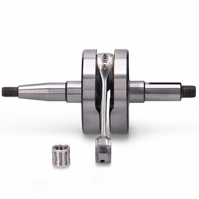 Ce vilebrequin se distingue par des finitions remarquables, une bielle entièrement polie permettant une circulation optimale de l’huile pour un meilleur refroidissement, ainsi qu’une cage à aiguilles en argent renforcée capable d’atteindre plus de 16 000 tr/min.