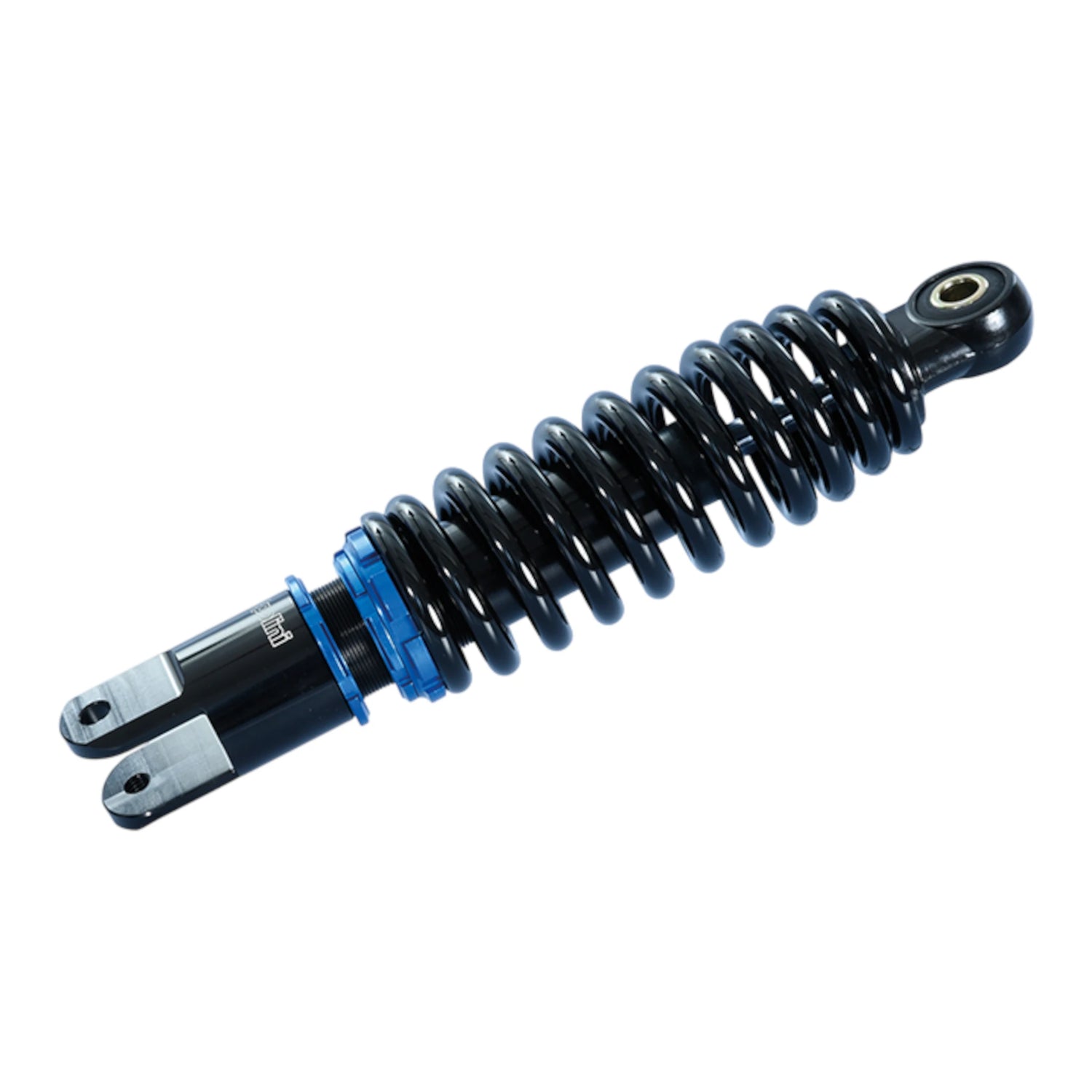 - Tipo: Amortiguador hidráulico con muelle negro y detalles en azul anodizado.