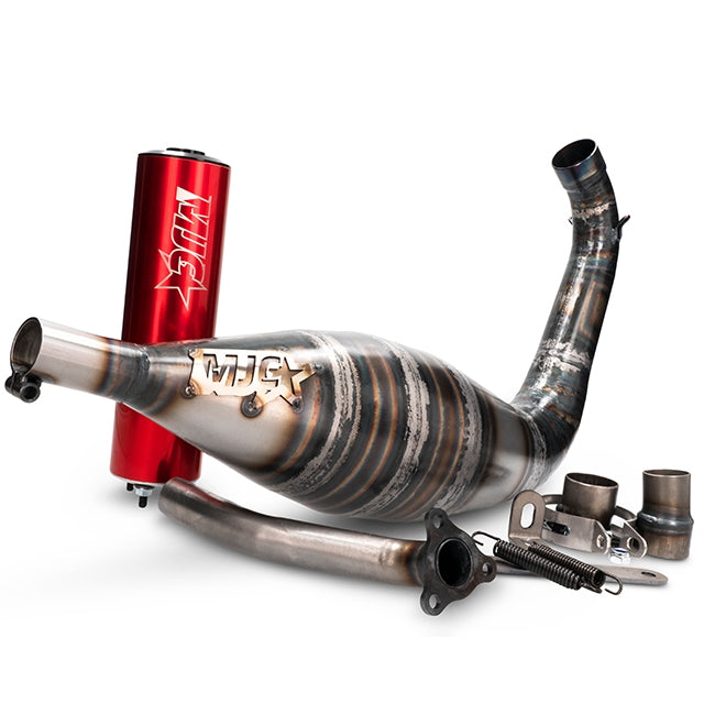 El escape MJC 100/110 esta pensado para las preparaciones mas exigentes del mercado. Pensada paras los cilindros de alta cilindrada 100cc como 2Fast, Bidalot o Parmakit.