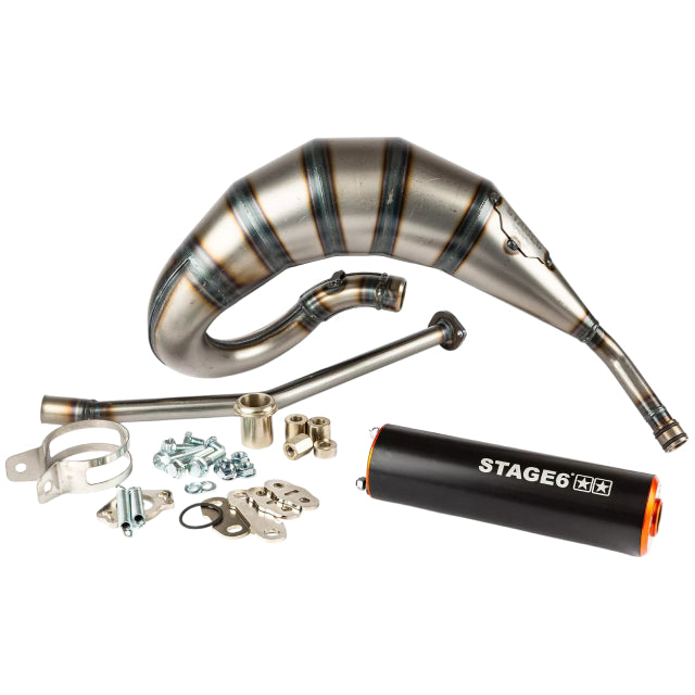 Tubo de escape completo Stage6 Streetrace 70cc con salida por arriba para Derbi Senda.