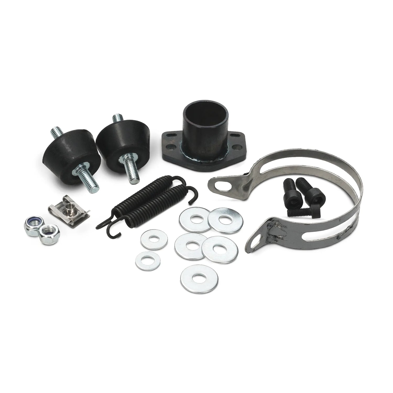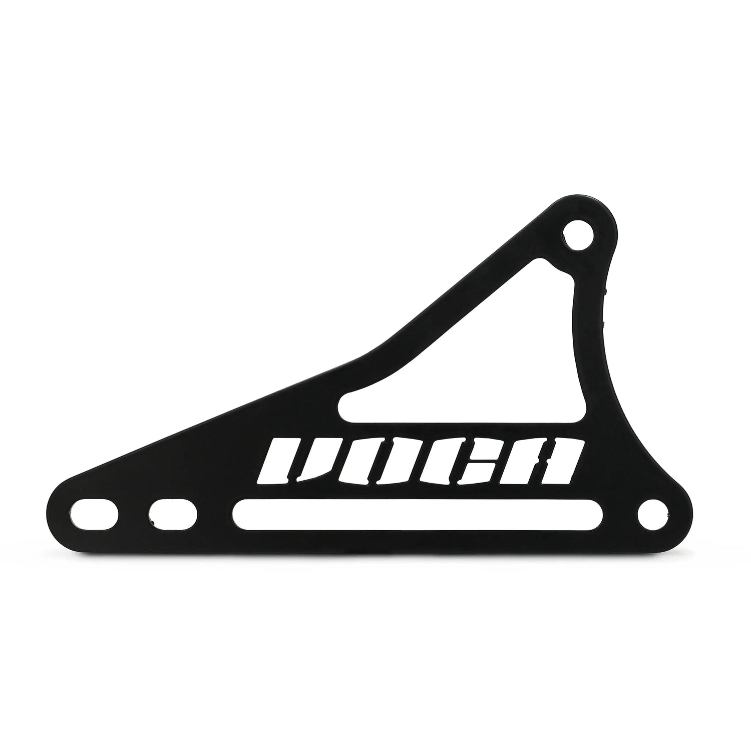 Silenciador de aluminio anodizado rojo con logotipo blanco grabado a Láser, fijación con tres tornillos. Adicionalmente está equipado con una brida remachada, lo que normalmente sólo tienen escapes exclusivos como el VOCA Combat o el YASUNI Carrera 30. El soporte del escape pintado en color negro con el logotipo de VOCA cortado a laser.