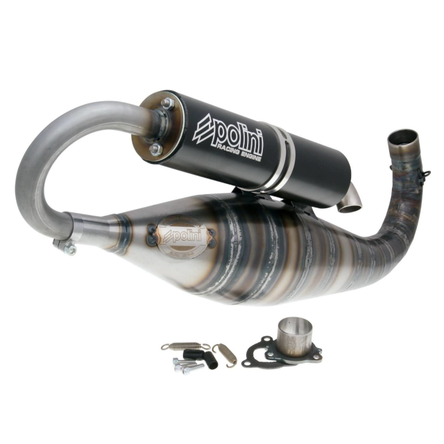 Polini nos ofrece un escape de alto rendimiento fabricado en Italia y especialmente diseñado para el motor Piaggio Zip PRE 100cc. Está compuesto por 17 piezas y lleva una placa de edición limitada soldada por 2 puntos.