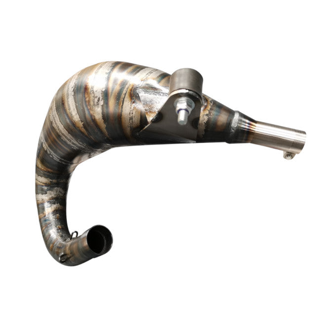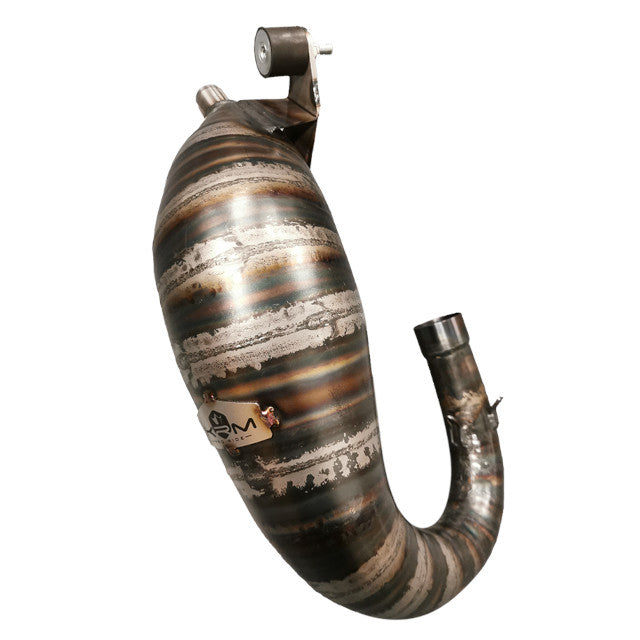 El escape KRM 80-90cc para motor AM6 está compuesto por 17 piezas de chapa de acero de 0,8 mm de espesor. El escape KRM 80-90cc es muy potente y está diseñado para grandes configuraciones. Está diseñado para usarse únicamente en competicion. Es la culminación de meses de trabajo en el banco de pruebas para ofrecer las mejores prestaciones.
