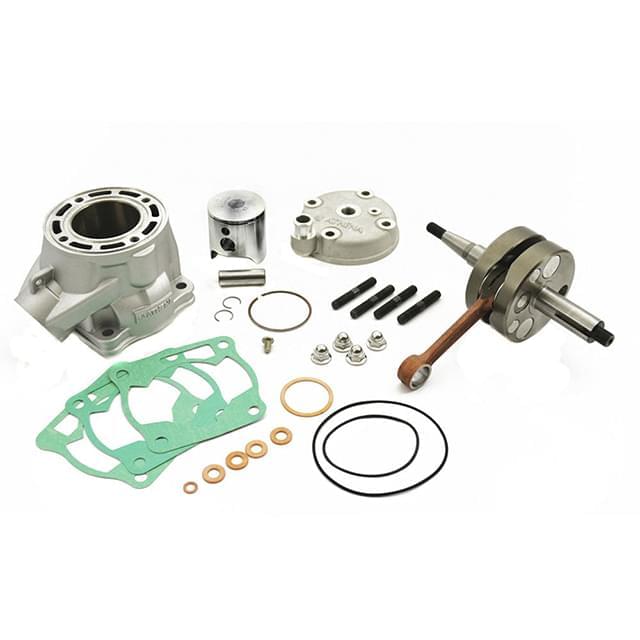 El kit esta compuesto con su cilindro, pistón, pack de juntas, culata... pero sobre todo su cigüeñal de carrera larga 51mm para aumentar considerablemente las prestaciones de tu YZ
