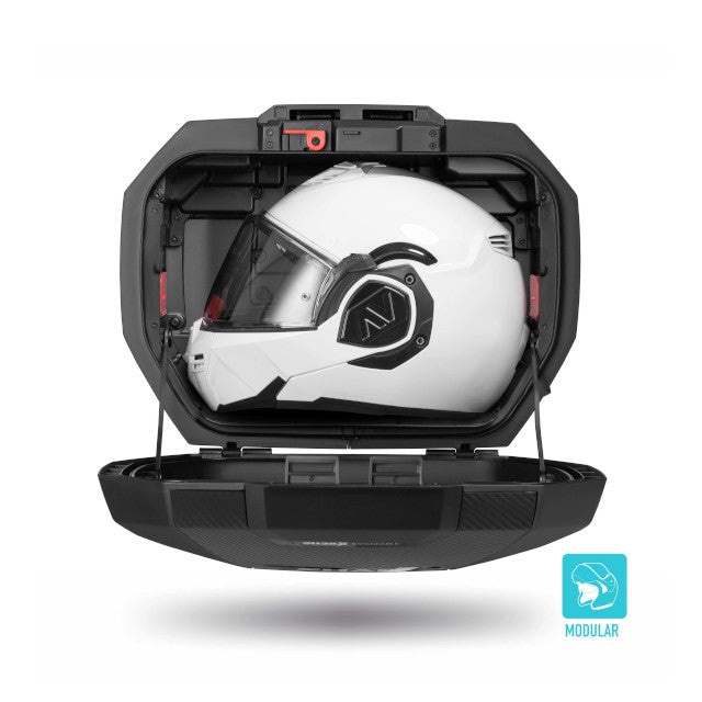 Pueden expandirse +70mm, aumentando su volumen en un 40%, permitiendo el almacenamiento de un casco modular en su interior. La maleta puede alcanzar el máximo nivel de integración en la moto cuando se utilizan fijaciones 3P system.