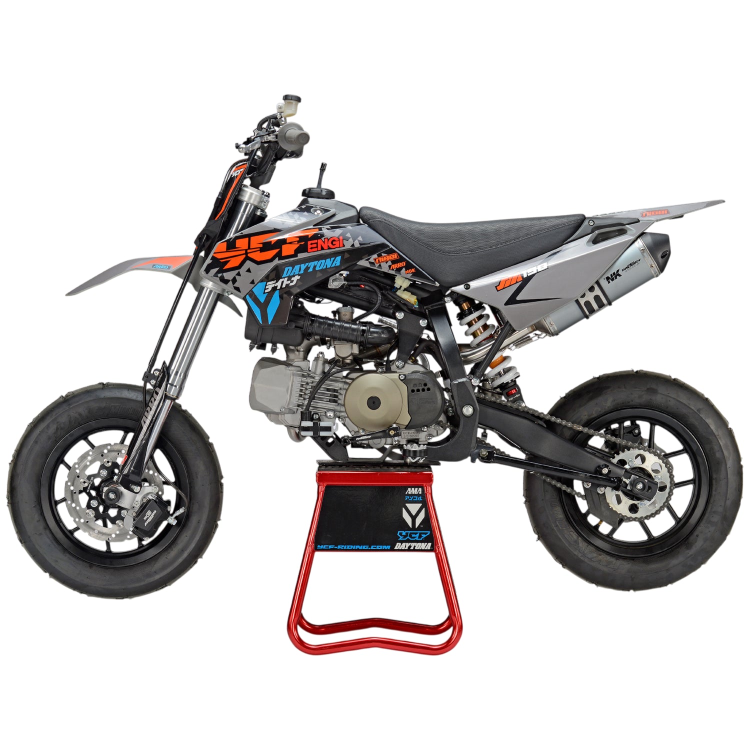 Pitbike YCF SM 190 motor Daytona color gris y naranja.