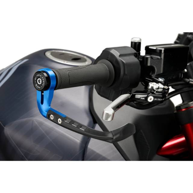 El protector se entrega en versión universal, compatible con manillares de diámetro interior entre 13 y 18 mm, sin necesidad de adaptadores adicionales. Para motocicletas con configuraciones específicas, Puig ofrece adaptadores opcionales. También está disponible un contrapeso adicional para el lado del embrague, lo que permite mantener la simetría estética y funcional del manillar.