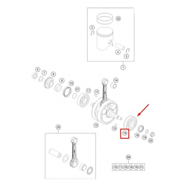 Rodamiento cigüeñal NTN 32x65x17 KTM 250-300 EXC / SX