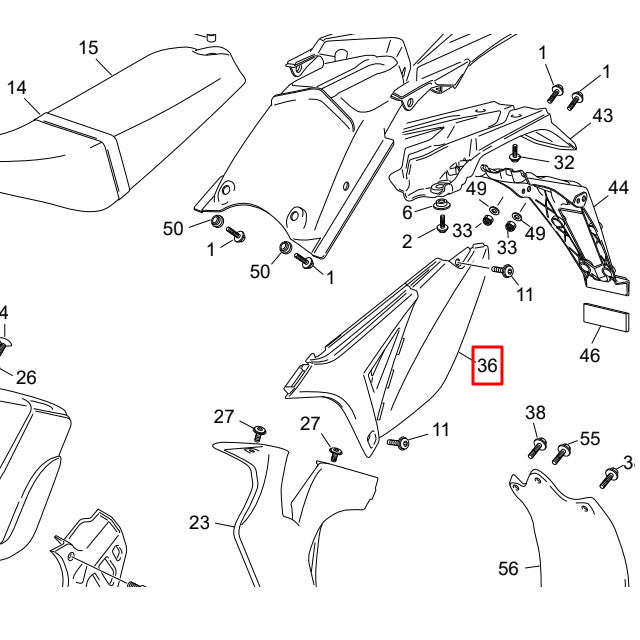 Tapa trasera izquierda original para Sherco 50cc a partir del 2012 en color Azul y Blanco .