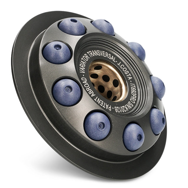 Variador Jcosta Pro para Sym Fiddle 1-2 Euro 3 125cc / Kymco Agility 125cc anterior al 2014 / GY6 125cc. La serie Pro utiliza un diseño revolucionario, en su interior equipa unos disipadores de calor entre la zona de las masas y el casquillo, disminuyendo la temperatura y el peso del variador. El alojamiento de las masas esta agujereado, produce un efectro presion-depresion que hace que actuar de manera mas rapida y suave sin saltos.