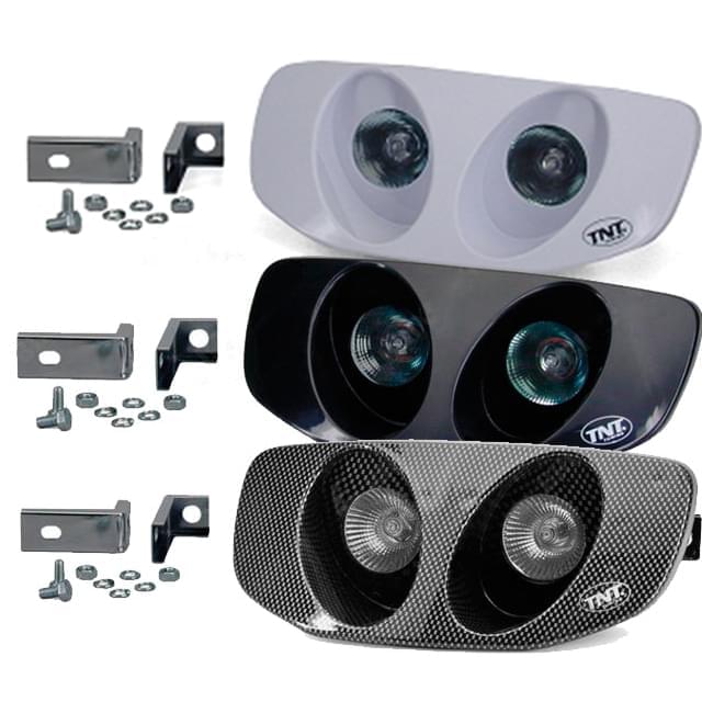 Um farol de qualidade da TNT. Equipado com dois focos halogéneos. A montagem é muito fácil, a ótica encaixa perfeitamente nos carenados de série. Disponível em várias cores.