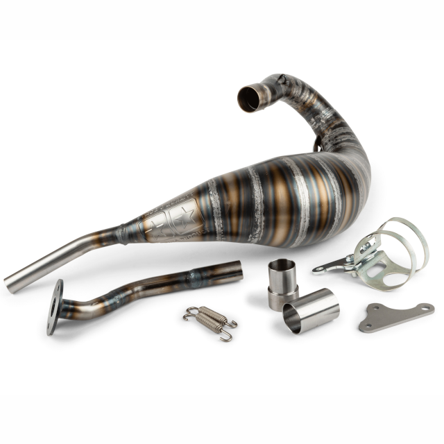 O escape de gama alta desenvolve todo o seu potencial com motores preparados de 80cc/90cc; podes esperar um desempenho excelente em toda a faixa de rotações e, especialmente, a médias e altas rotações.