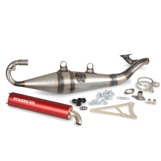 Com o PRO Replica MK2, o fabricante Stage6 oferece um escape Sport/MidRace homologado para motores Minarelli Horizontal, destacando-se pelo seu desempenho e um binário impressionante, além de um preço excecional.