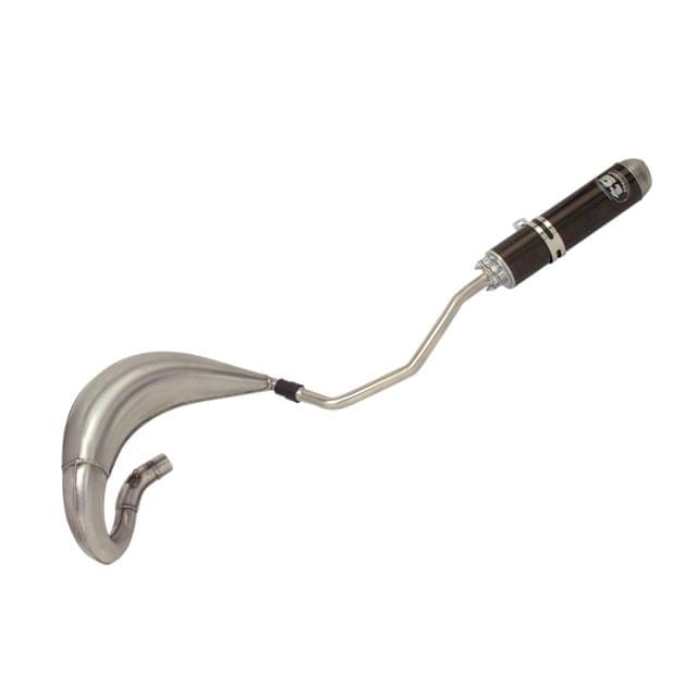 O escape todo-o-terreno de 50 c.c., com silenciador em preto metalizado. Graças ao isolamento especial do silenciador, é um escape discreto que produz pouco ruído. A saída superior garante um bom desempenho em baixas rotações. Um escape com um preço bastante acessível que, além disso, está homologado. Disponível para todos os modelos comuns. Saída superior - homologado