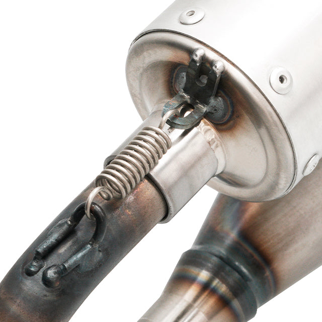 Escape muito refinado, artesanal, que não só garante uma potência máxima, como também se destaca pelo seu excelente acabamento. Silenciador fixado com mola e curva soldada à mão com várias chapas.