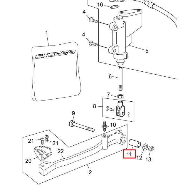 Espaçador do pedal de travão original para modelos Sherco 50cc.