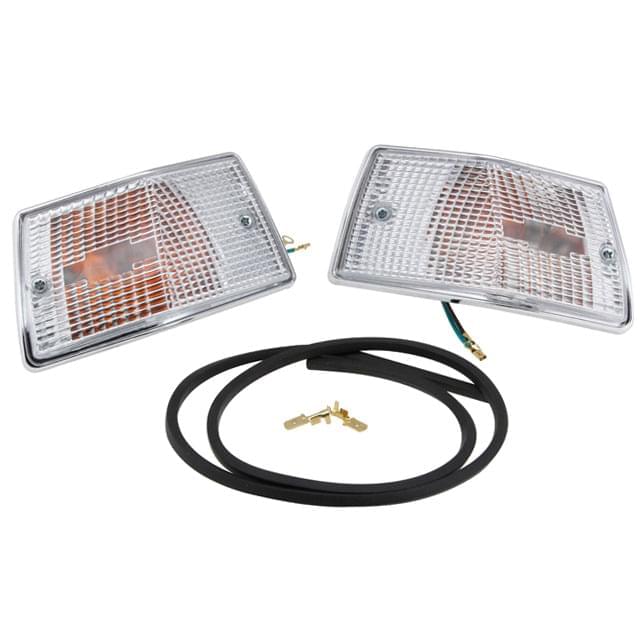 Conjunto de intermitentes com aro cromado e tulipa branca.