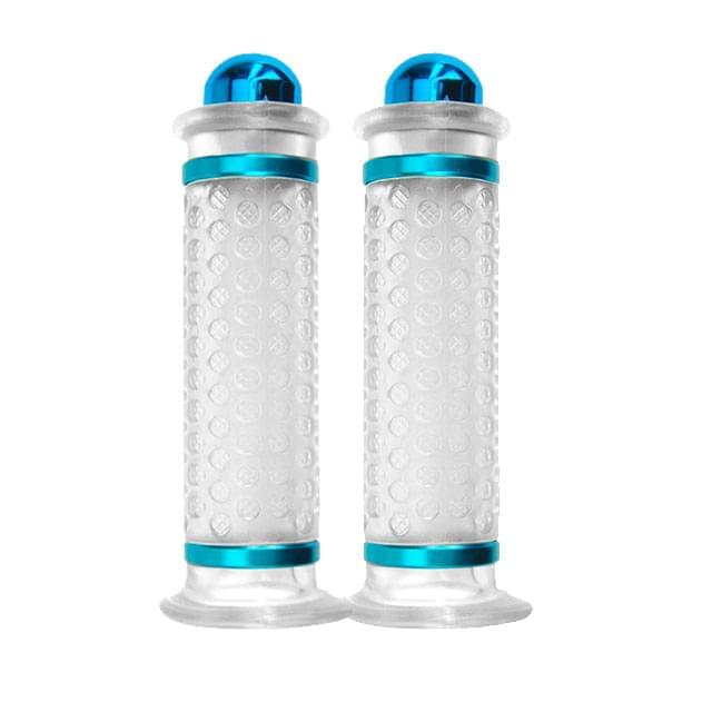 Punhos com topos de alumínio, arredondados. Com estes punhos não precisas de adicionar contrapesos, pois já vêm integrados nas extremidades. Disponíveis em várias cores.
