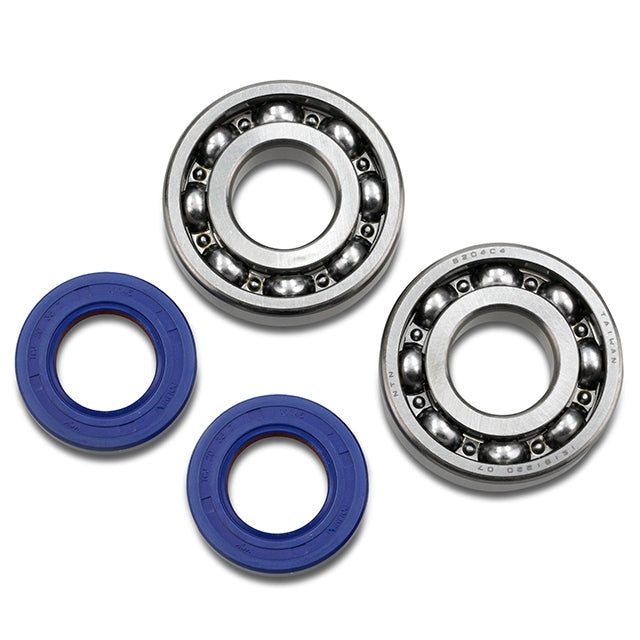 Magnífico kit da Polini de rolamentos e retentores; este kit é composto por um conjunto de rolamentos com gaiola de aço C4 com um máximo de 20000 rpm.